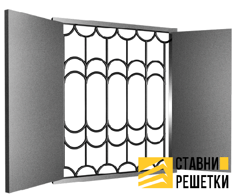Ставни с 2мя створками и кованой решеткой ГС-16